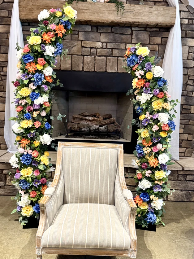 A textured fabric backdrop with a rustic woodgrain pattern, adding a touch of vintage charm to your event. Or a sleek, minimalist white vinyl backdrop ideal for a black tie event with clean lines and a neutral background. Prefer something more relaxed and artsy? Our greenery wall is just for you! We also offer custom floral arches to accent the alter, head table and more.